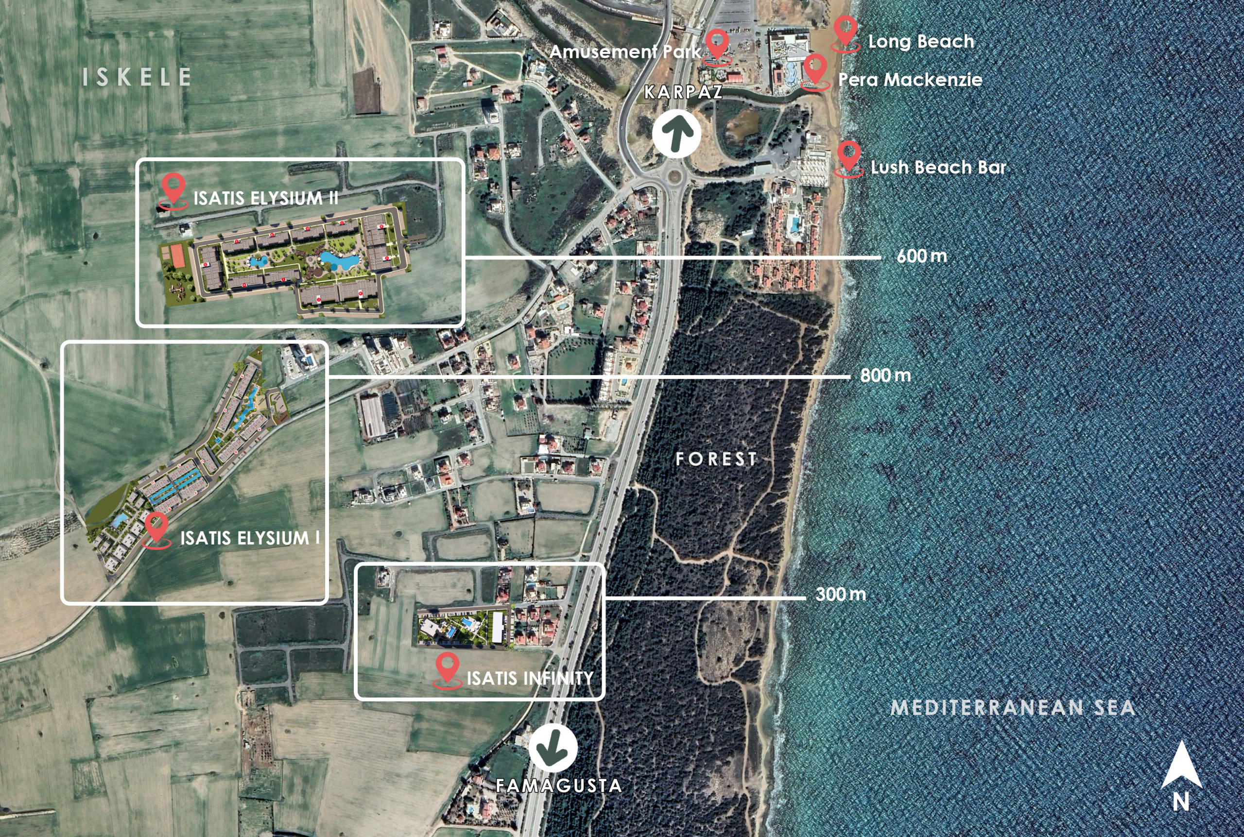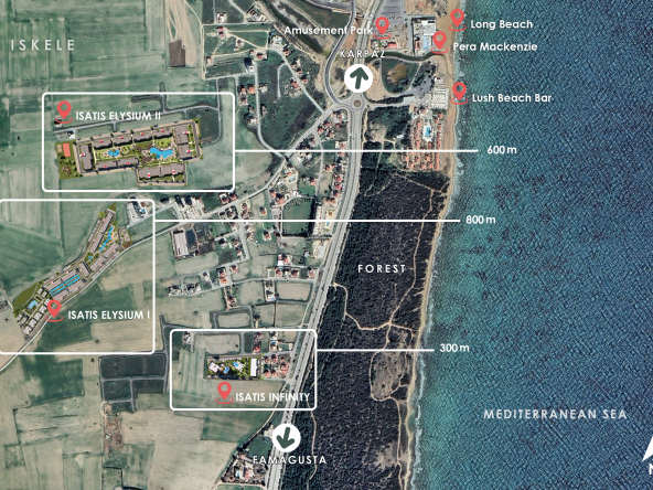 Nur wenige Schritte vom goldenen Sandstrand entfernt, ein Gleichgewicht zwischen Ruhe und Aktivität, weit weg von der Hektik der Stadt und dennoch mit einfachem Zugang zu den Geschäfts- und Freizeitzentren, macht Elysium I Nordzypern zu Ihrem Traumort